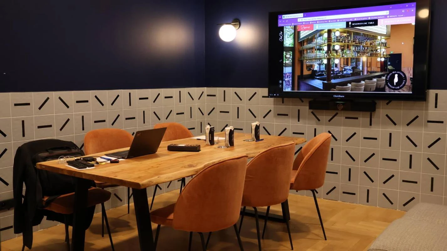 Im hinteren Teil des Cafés gelegen, können Sie diese ca. 17 m² große VIP-Box für ein Mittagessen, ein Brainstorming oder ein privates Treffen buchen. Dieser Raum besteht aus einem Sofa und einem Tisch für bis zu 6 Personen und ist mit einem Fernseher ausgestattet, auf dem Sie Ihre Präsentationen halten können.